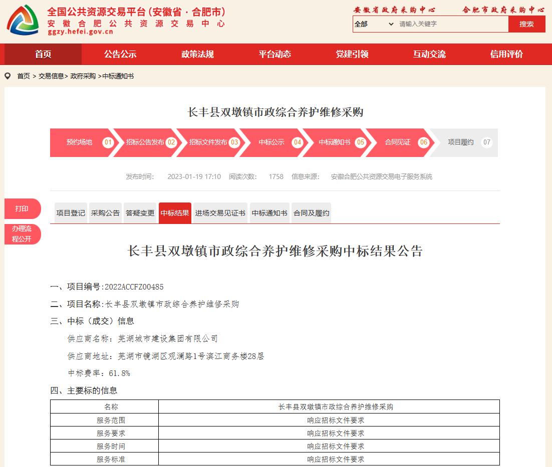 一年春作首,萬事行為先!蕪湖城建集團(tuán)全面貫徹落實(shí)黨的二十大精神,按照集團(tuán)工作會議部署要求,開好局、起好步,立足經(jīng)濟(jì)主戰(zhàn)場,深耕合肥城市運(yùn)營維護(hù)業(yè)務(wù)。在2023年新年伊始,阿米巴再傳佳訊,中標(biāo)長豐縣雙墩鎮(zhèn)市政綜合養(yǎng)護(hù)維修采購項(xiàng)目。