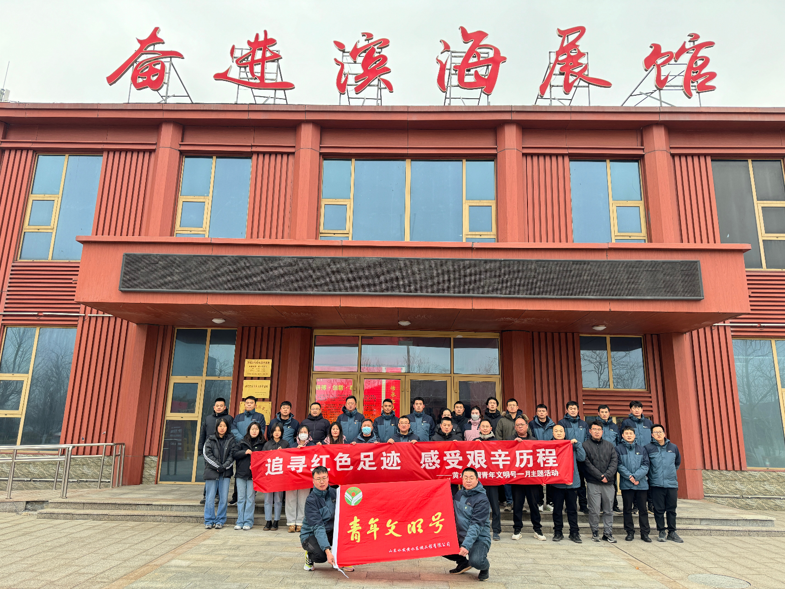 1月31日,全體員工參與了一次意義深遠的戶外徒步活動,以深刻感受長征精神為主旨,分為四個小隊,徒步從濰坊濱海龍舟帆船基地出發(fā),沿白浪河步行5.5公里,最終歷經(jīng)一個多小時的長途跋涉后抵達濰坊濱海黨性教育基地。當日寒風凜冽、氣溫驟降,在這段路程中,青年們深刻理解了堅韌不拔、自強不息、勇往直前長征精神的內涵。