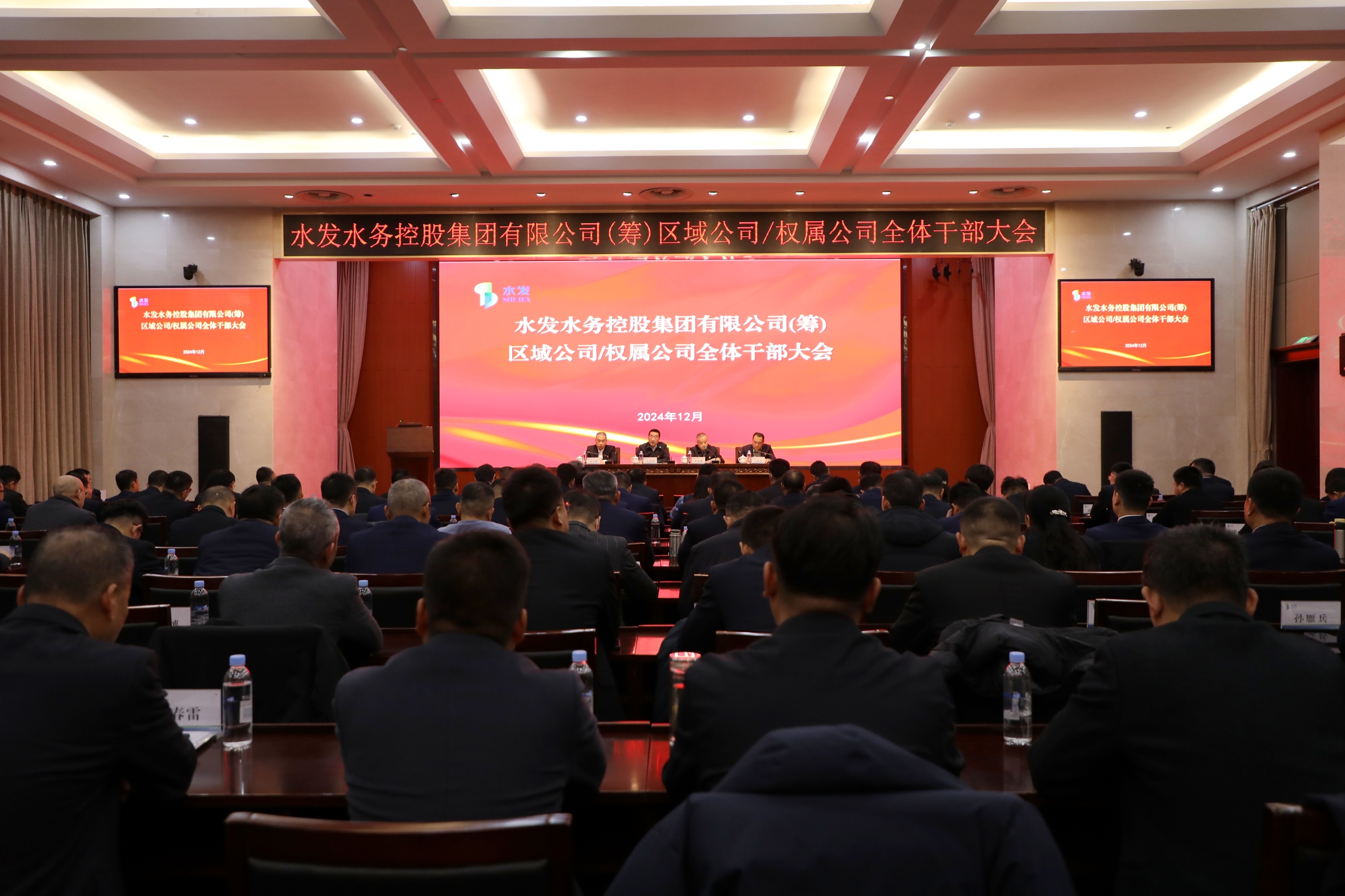 12月31日,為打造“主業(yè)突出、運行規(guī)范、效益良好、履責(zé)到位”的新水發(fā),通過完善考核激勵與約束機制,建設(shè)一支忠誠、干凈、擔(dān)當(dāng)?shù)母咚刭|(zhì)干部隊伍,水發(fā)水控集團(tuán)召開全體干部會議。集團(tuán)黨委書記、董事長王忠華出席會議并講話。