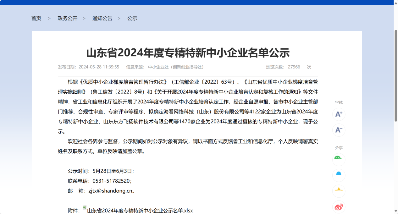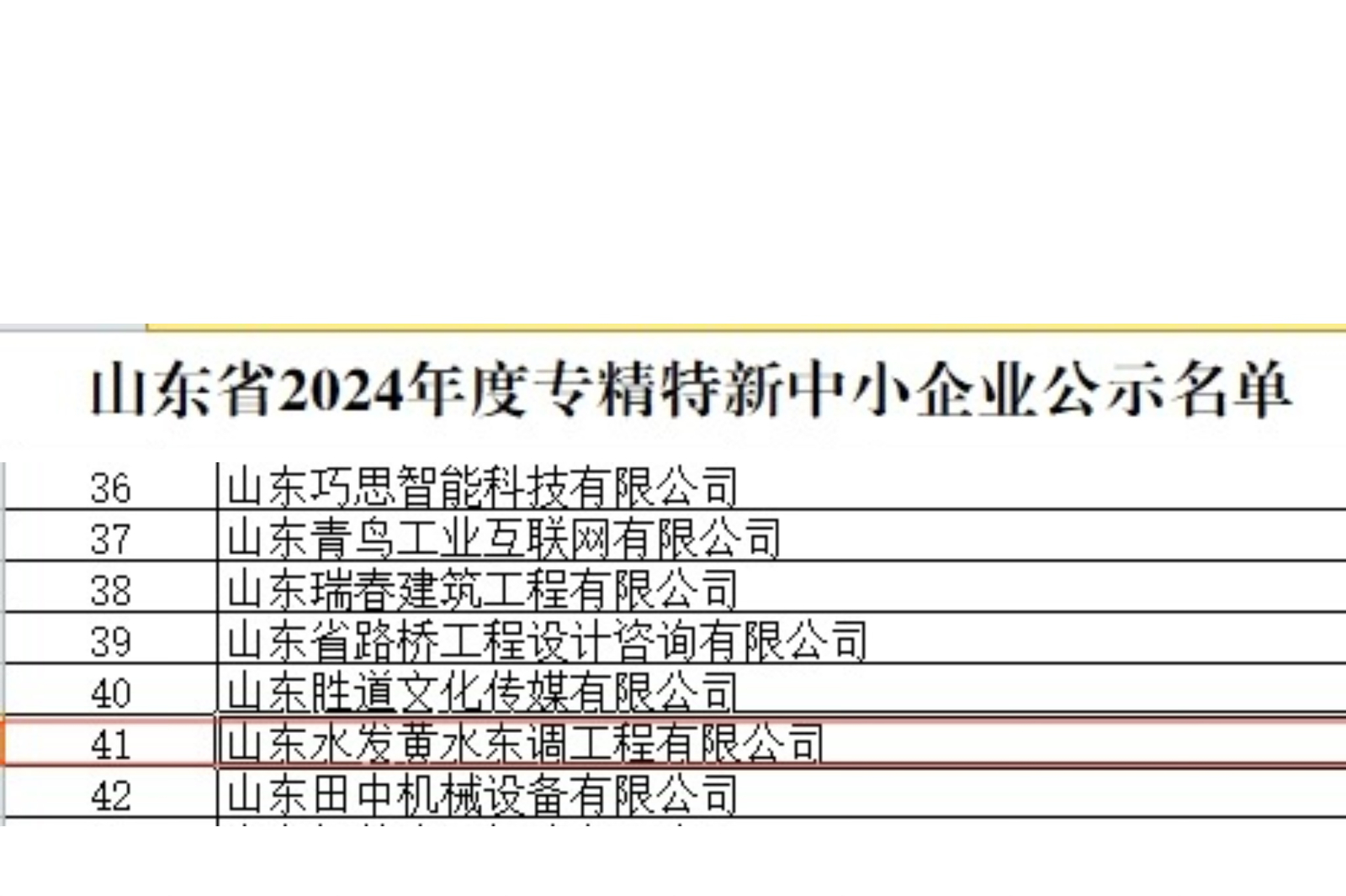 近日,山東省工業(yè)和信息化廳公示了山東省2024年度專精特新中小企業(yè)名單。經(jīng)自評(píng)申報(bào)、市級(jí)審核推薦、省級(jí)專家評(píng)審等程序,山東水發(fā)黃水東調(diào)工程有限公司進(jìn)入公示名單,順利通過山東省2024年度專精特新中小企業(yè)認(rèn)定。