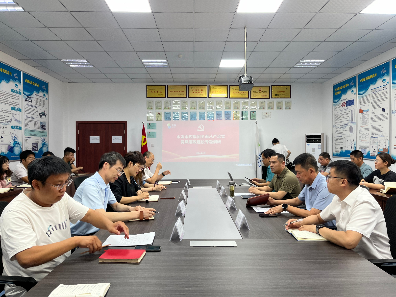 6月18日,水發(fā)水控集團黨委委員、紀(jì)委書記王高升到濰坊河海水文科技有限公司開展全面從嚴(yán)治黨、黨風(fēng)廉政建設(shè)專題調(diào)研工作,水發(fā)水控集團濰坊區(qū)域公司總經(jīng)理張勇主持調(diào)研會議,河海公司全體員工參加調(diào)研。